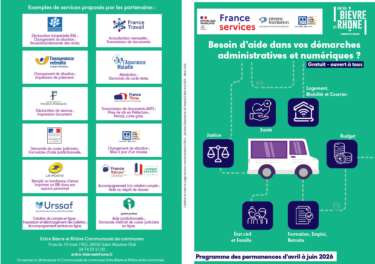 - au siège de la Communauté de communes Entre Bièvre et Rhône (9 Rue du 19 Mars 1962, Saint-Maurice-l’Exil),