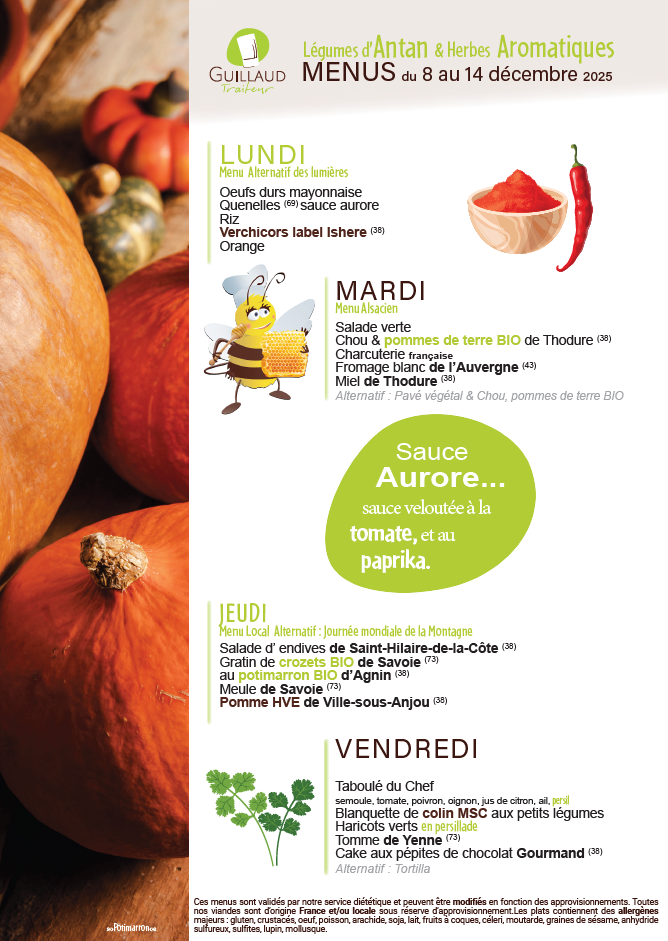 Un service de restauration scolaire est proposé à l’école de Pact par l’entreprise GUILLAUD TRAITEUR à LA CÔTE ST ANDRÉ.