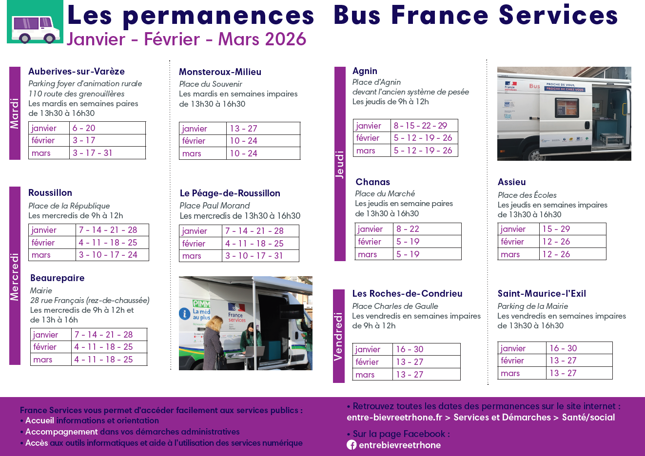 Permanences Bus France Services – JANVIER – FEVRIER – MARS 2026