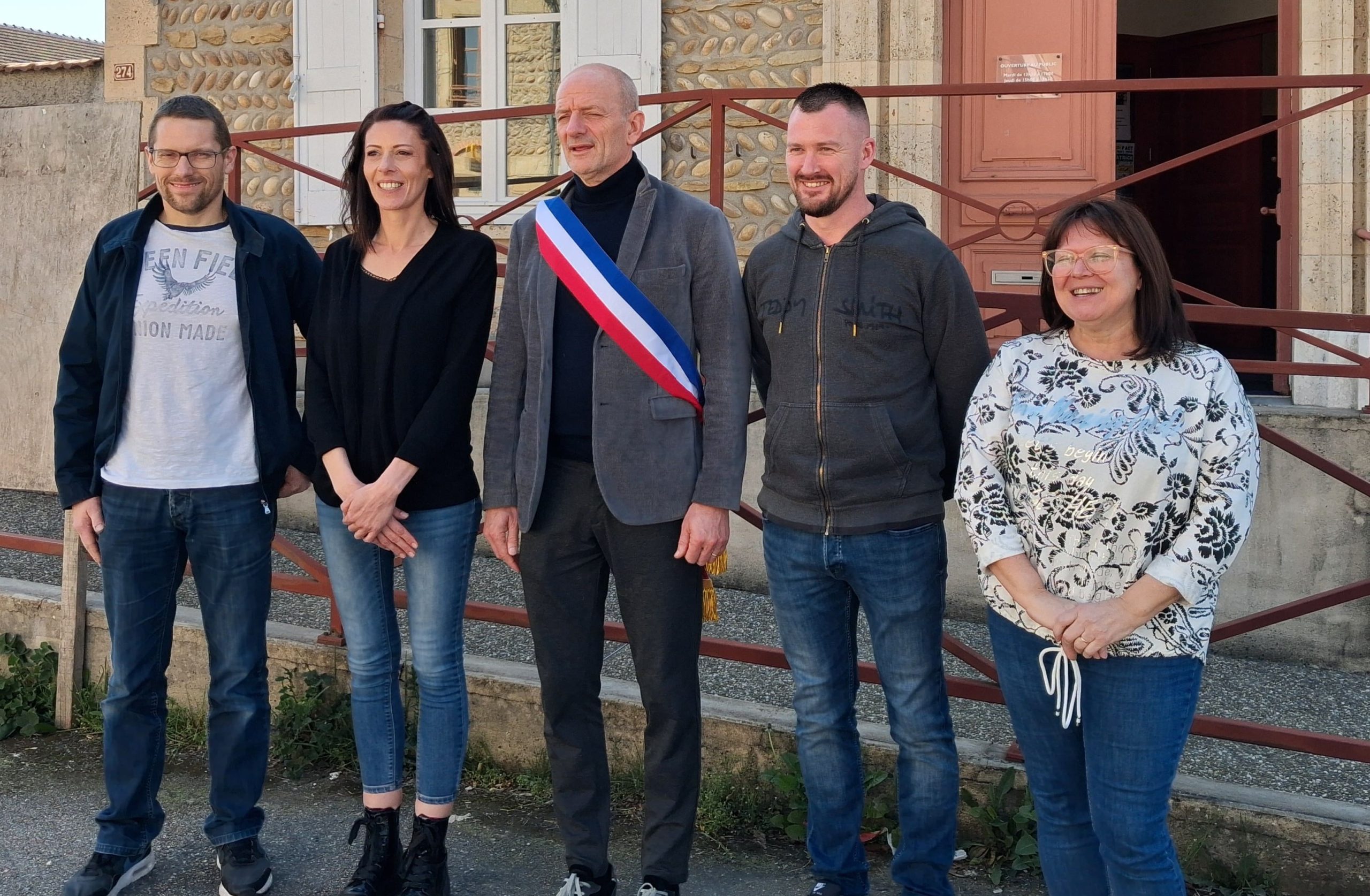 Mr COUTURIER Jérémie (4ème adjoint), Mme GIANCOLA Lydia (1ère adjointe), Mr ILTIS Laurent (Maire), Mr CÔTÉ Fabrice (2ème adjoint), Mme BUCZKO Valérie (3ème adjointe)